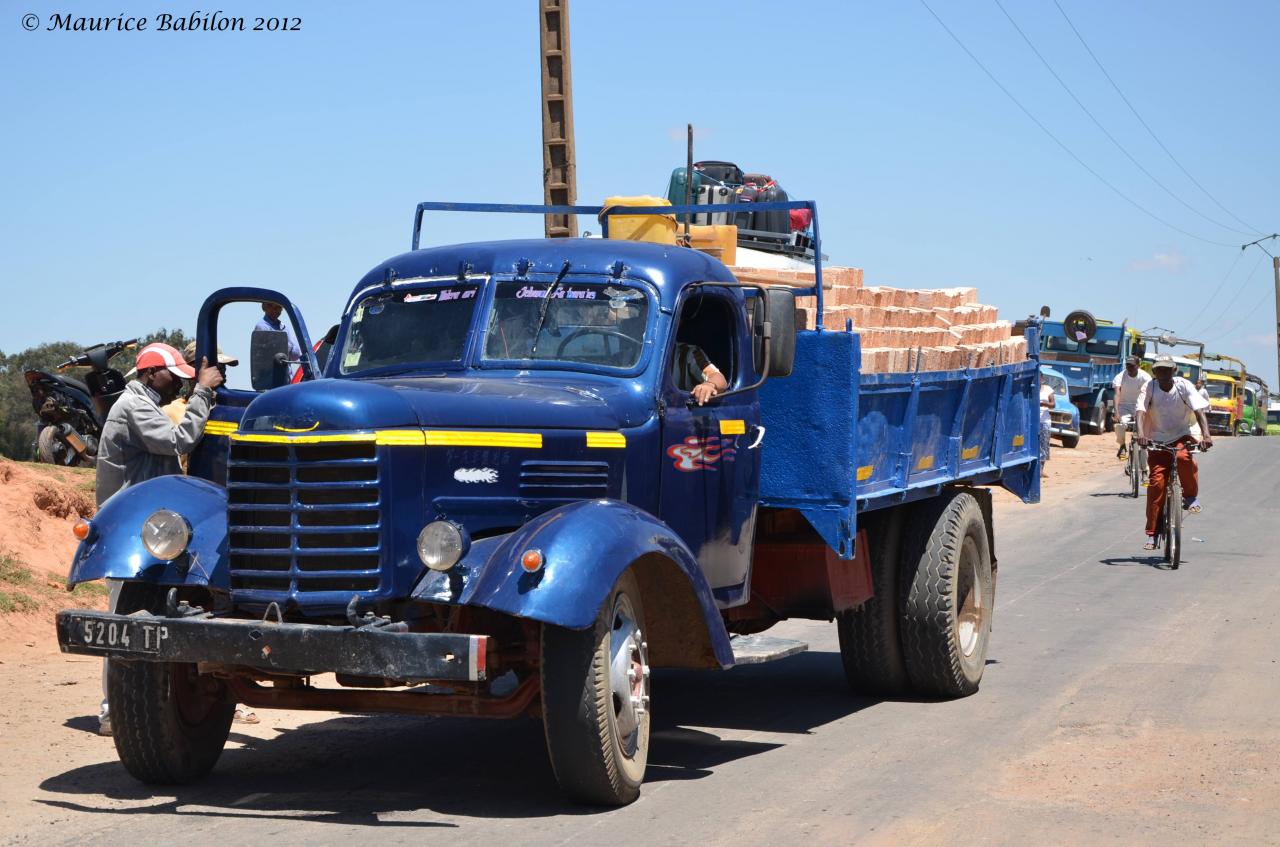 Région de Betapo . Beau camion , costaud avec sa surcharge quotidienne , utilisé pour le transport de briques